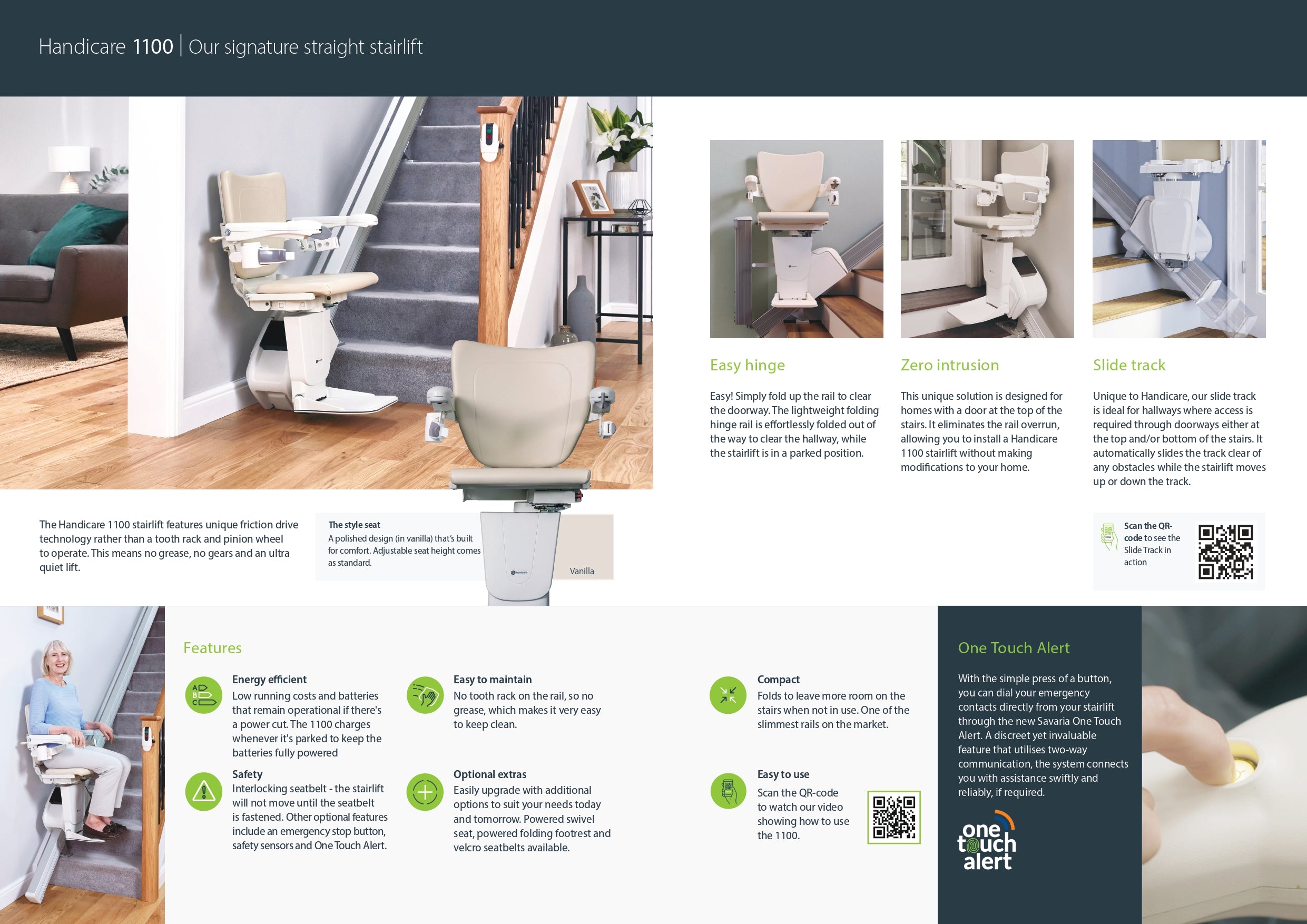 With a compact, grease-free rail, the 1100 not only fits seamlessly into your home but is also incredibly easy to clean and maintain. Its minimal design ensures that it blends effortlessly with any interior, giving you enhanced mobility without compromising on style or space.