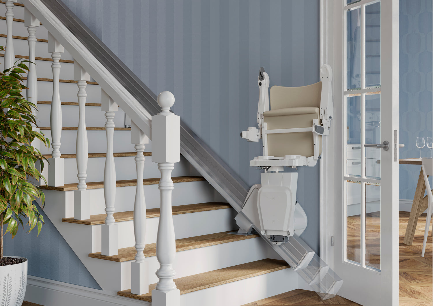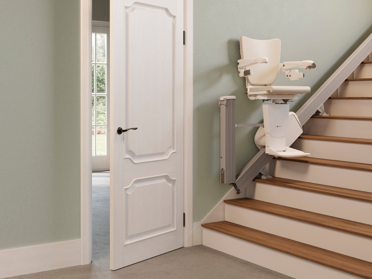 We offer three specialist solutions to keep your walkways clear: an Easy Hinge that can be folded away manually, a Slide Track that automatically moves the rail clear of doorways while the lift is in motion, and a Zero Intrusion kit designed specifically for homes with a door or trip hazard at the top of the stairs.